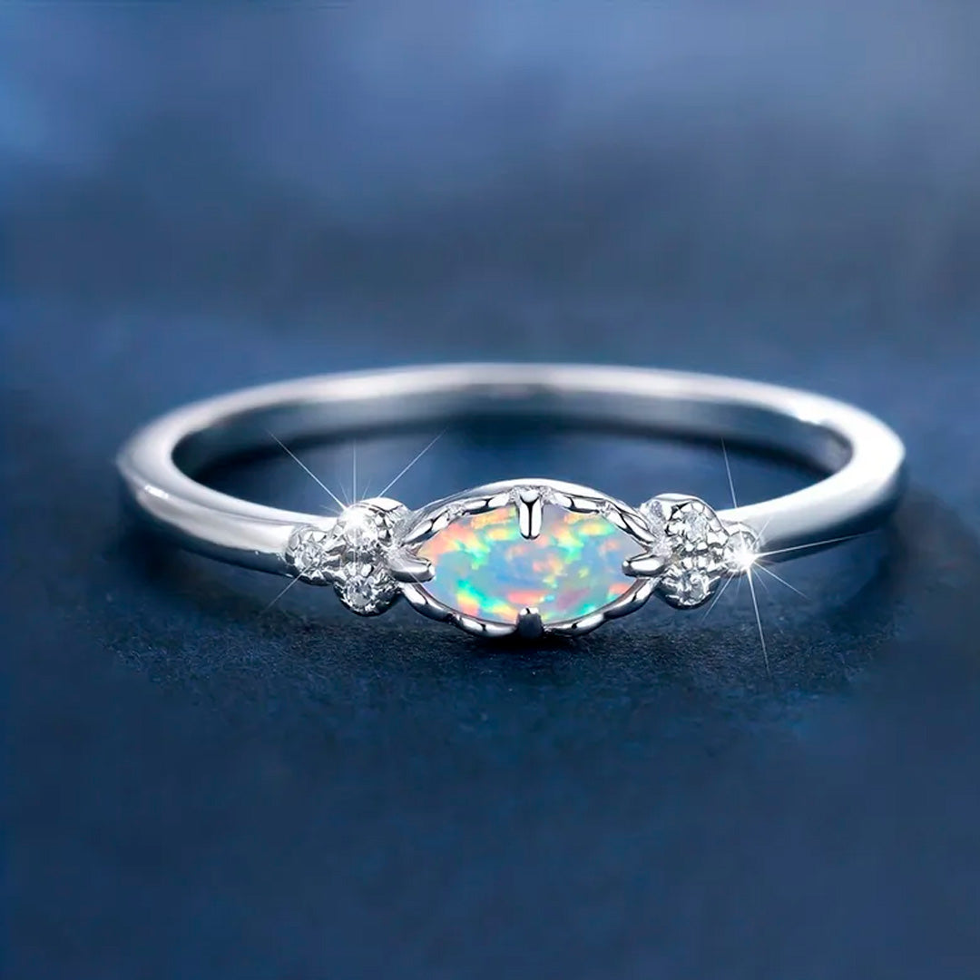 Ideal para looks casuales hasta los más elegantes. Amarás la combinación de su ópalo central con zirconias, lo que le dará un brillo sutil pero encantador.