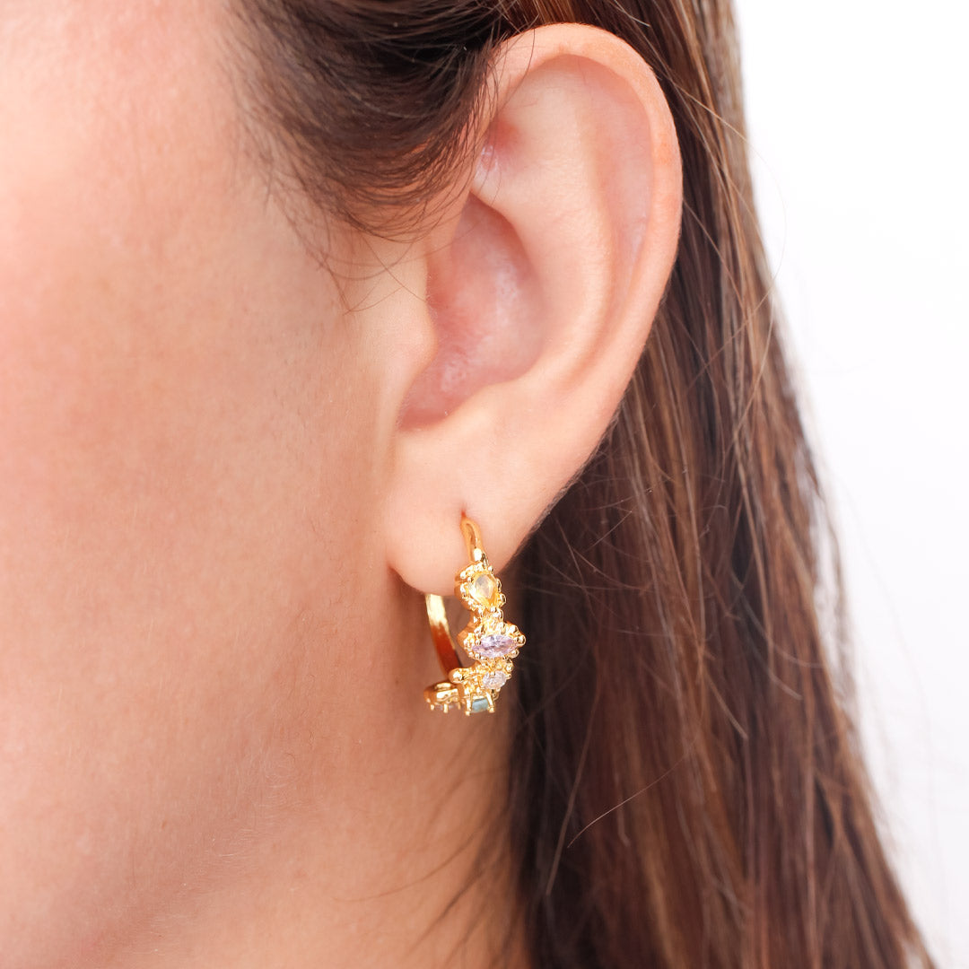 Un diseño moderno que combina el dorado cálido con cristales que aportan un juego de luces sutil y glamuroso. Perfectas para quienes buscan un accesorio versátil que nunca pase desapercibido.