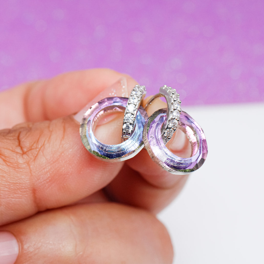 Estos aretes tipo huggie son una pieza básica que sin duda debe formar parte de tu colección, sus lindos detalles de color y sus zirconias le dan un toque súper lindo.