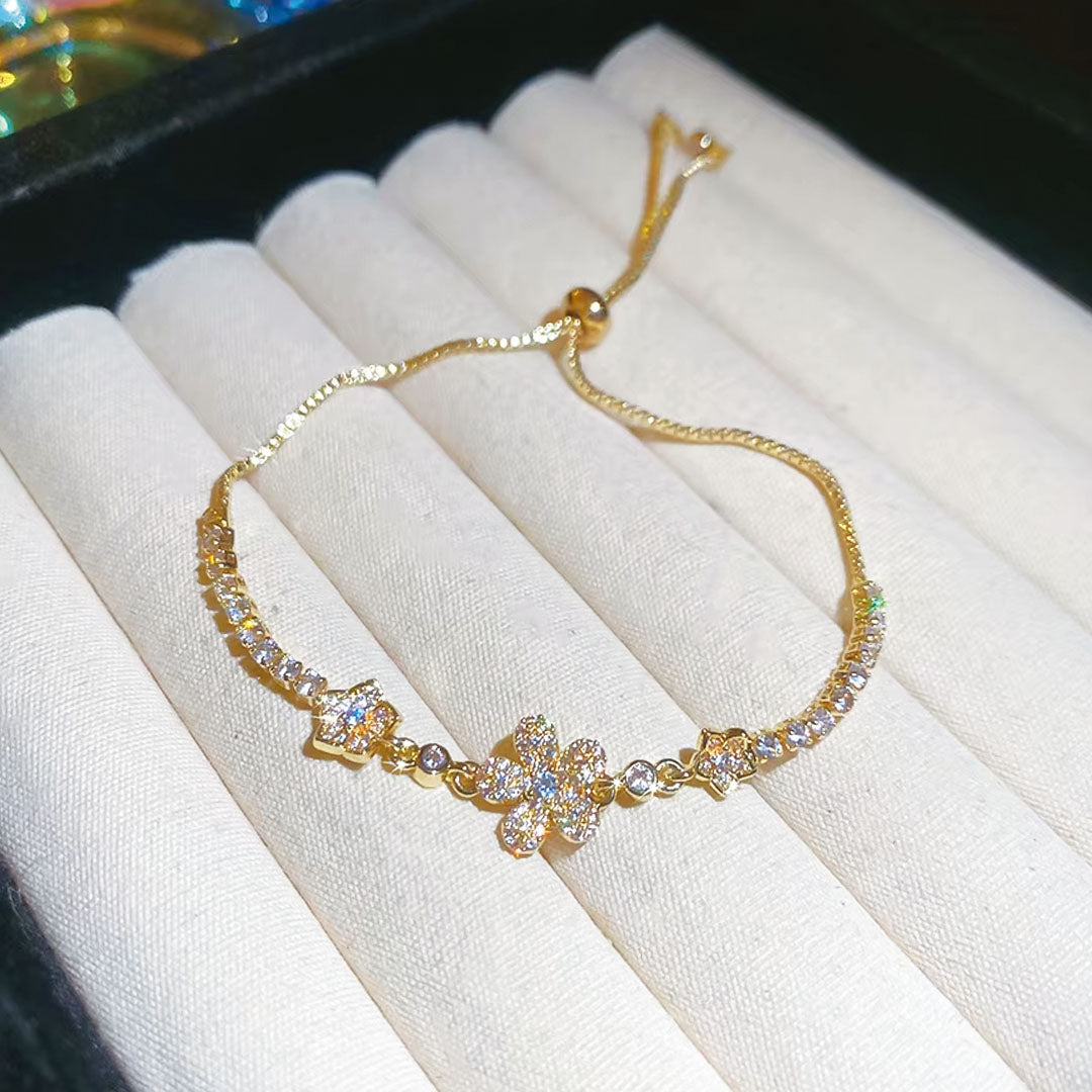 Agrega brillo a tu outfit con esta hermosa pulsera en color dorado o plateado, la amarás porque además se ajusta a tu manita.