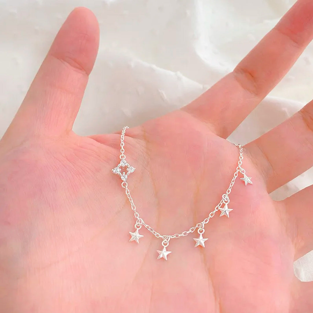 Inspirado en el cielo nocturno, esta pulsera de estrellas junto a sus brillantes zirconias le dará un toque elegante y único a tu look.
