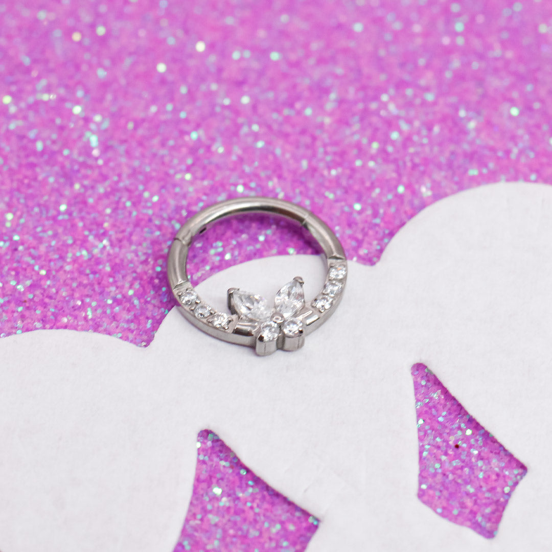 Este aro con detalle de mariposa es ideal para quienes buscan un accesorio elegante, femenino y lleno de encanto, hecho de titanio grado implante para máxima durabilidad y cero alergias.