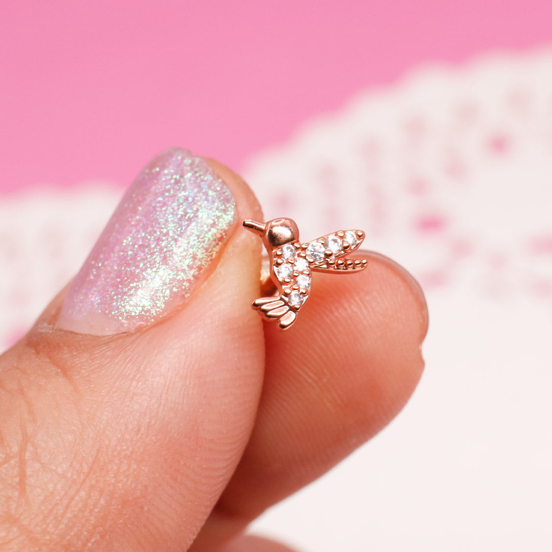 Haz este piercing parte de tu colección, dale un toque único a tu orejita con este diseño único y lindo, representa alegría y libertad.