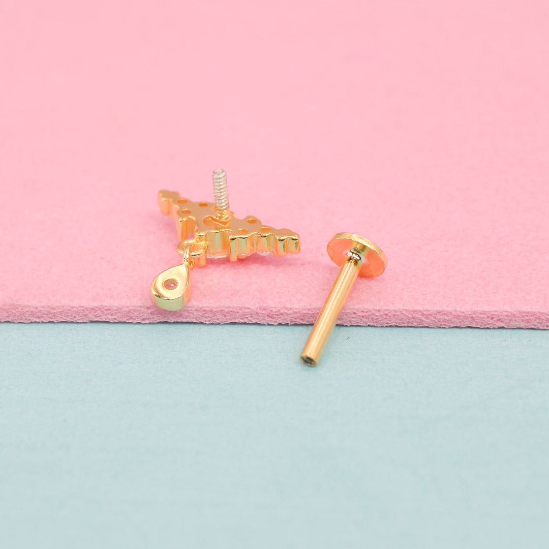 Haz que tu hélix destaque con este lindo piercing de plata 925. Con una zirconia colgante que capta la luz en cada movimiento lo que añadirá un toque de brillo a tu outfit.