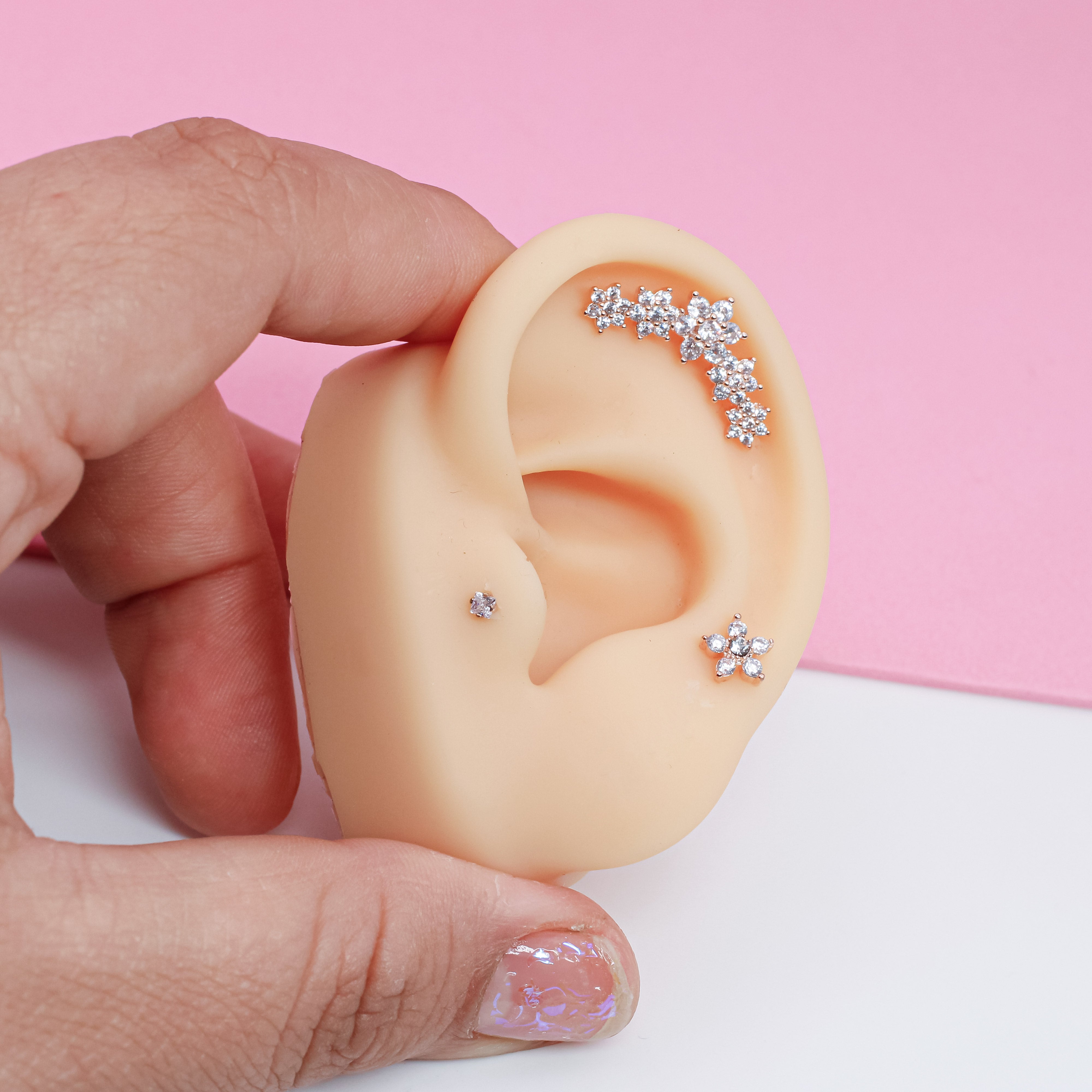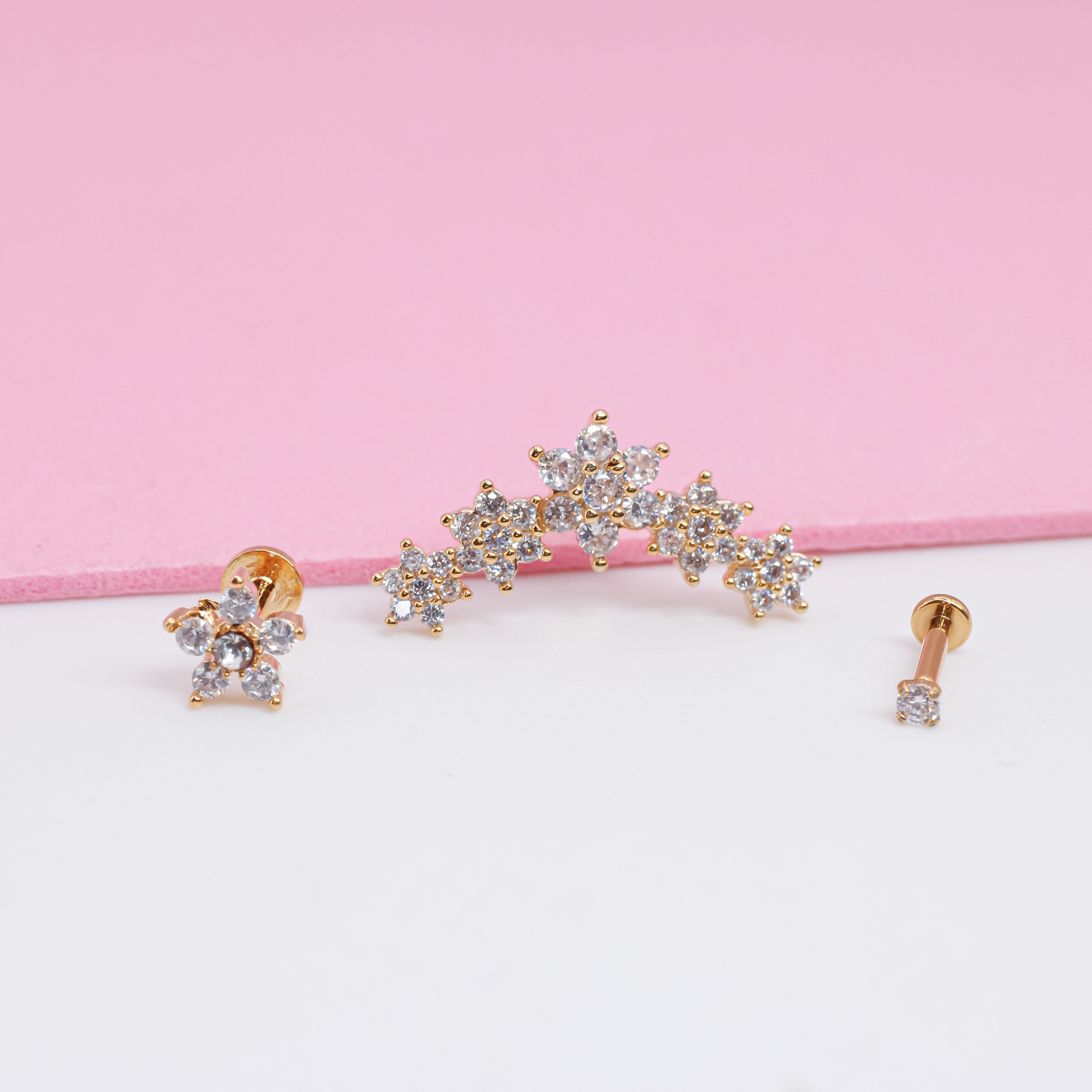Enamórate de este set que incluye 3 piezas, úsalos juntos o separados, se ven increíbles todos. Su cierre es muy versátil y se puede usar en helix, lóbulo alto y tragus.