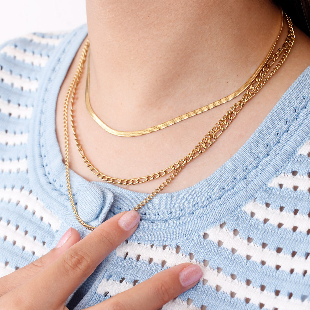 - 3 collares individuales: tipo serpiente, cadena eslabón mediano y cadena fina